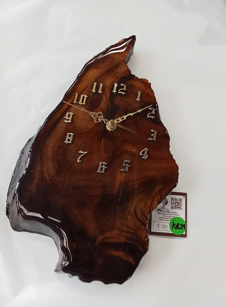 This beautiful Wall Clock is the perfect combination of style and tradition, handcrafted in New Zealand from our genuine Swamp Kauri, which has been buried in NZ Peat swamps for up to 50,000 years. This one is darker red very old wood. Every piece is unique and protected by a gloss finish with liquid glass resin coating.