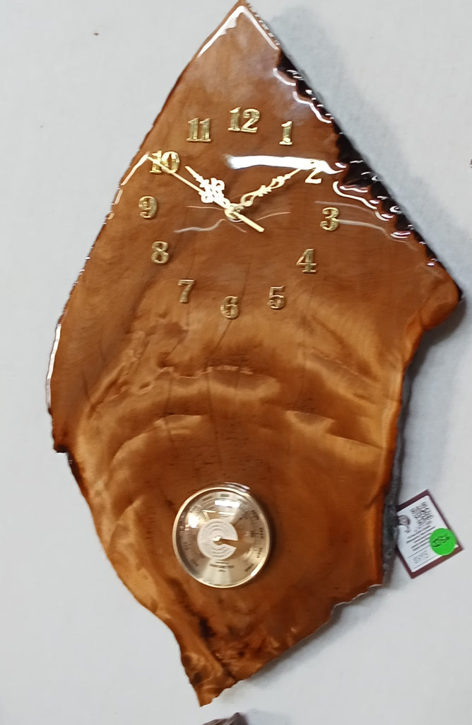 This big and beatuiful Wall Clock is magnificent and also has a barometer. It is the perfect combination of style and tradition, handcrafted in New Zealand from our genuine Swamp Kauri, which has been buried in NZ Peat swamps for up to 50,000 years. A special piece with colours and grain that will change with the light. Every piece is unique and protected by a gloss finish with liquid glass resin coating.